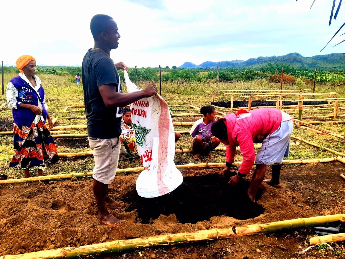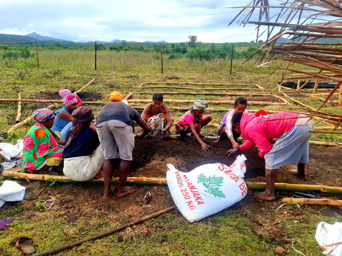 Nus avons installé les parterres, nous avons les graines et avons commencé les préparations de sols.